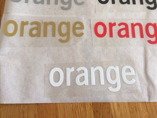 Flocage patch ORANGE en flex blanc ,noir, rouge, or et argent