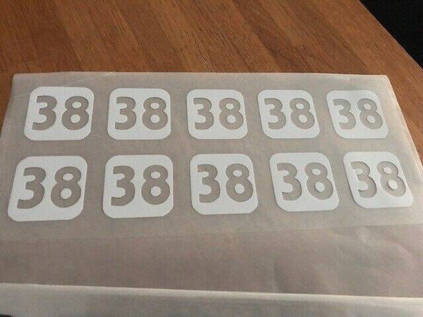Lot de 10 patchs flocages numéro 38 en flex pour personnaliser vos shorts ,maillots,chaussettes,etc....