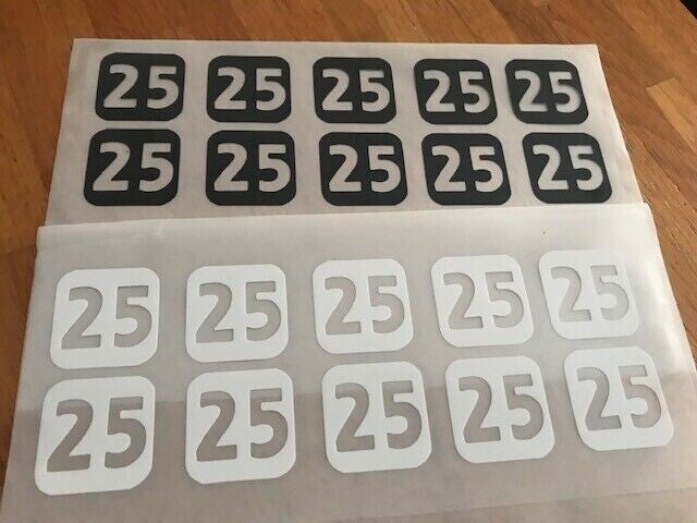 NUMÉRO 25 PACK DE 10 PATCHS FLOCAGES- 2.8 CM PAR 2.8 CM