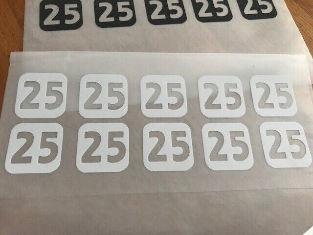 Lot de 10 patchs flocages numéro 25 en flex pour personnaliser vos shorts ,maillots,chaussettes,etc....