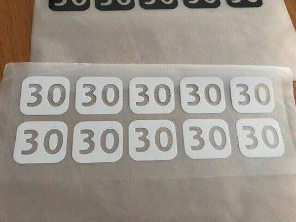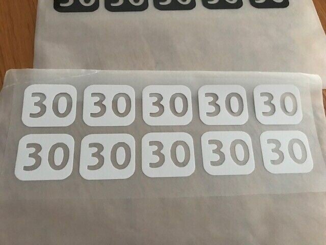 NUMÉRO 30 PACK DE 10 PATCHS FLOCAGES - 2.8 CM PAR 2.8 CM