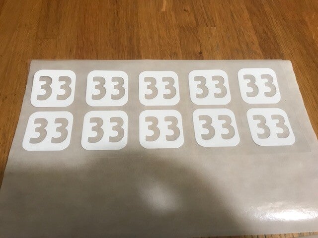 Lot de 10 patchs flocages numéro 33 en flex blanc pour personnaliser vos shorts ,maillots,chaussettes,etc....