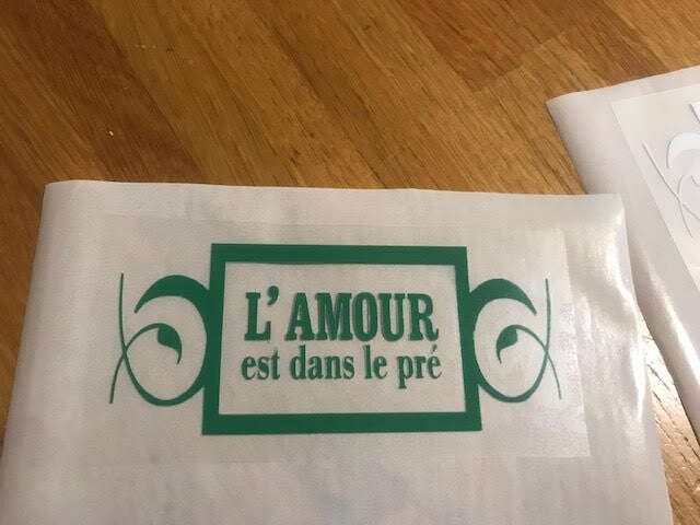 Flocage patch vinyle logo émission TV L'AMOUR EST DANS LE PRÉ